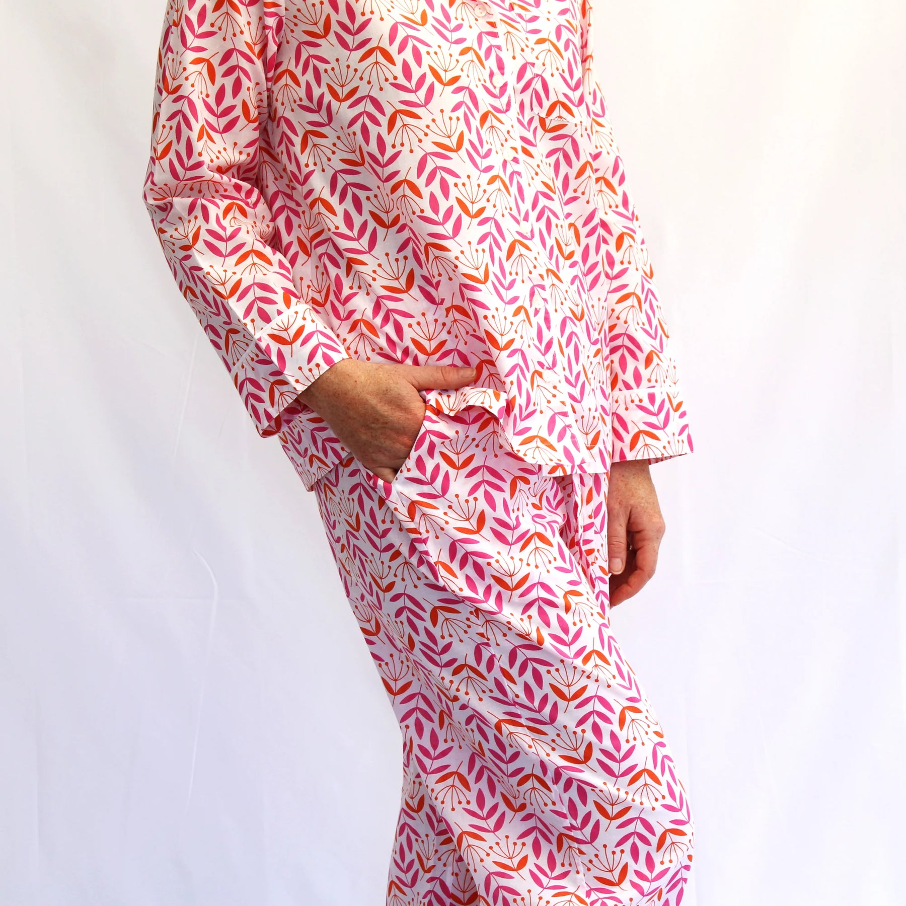 These beautiful cotton pyjamas come in a striking hot pink and orange print designed by Lime Tree Design. Perfect for relaxing in, the top has pocket and flat-piped collar and cuffs, while the bottoms come with an elasticated drawstring waist and two pockets with contrast piping. They come with a matching drawstring bag, making a wonderful Christmas or birthday present for a daughter or best friend.